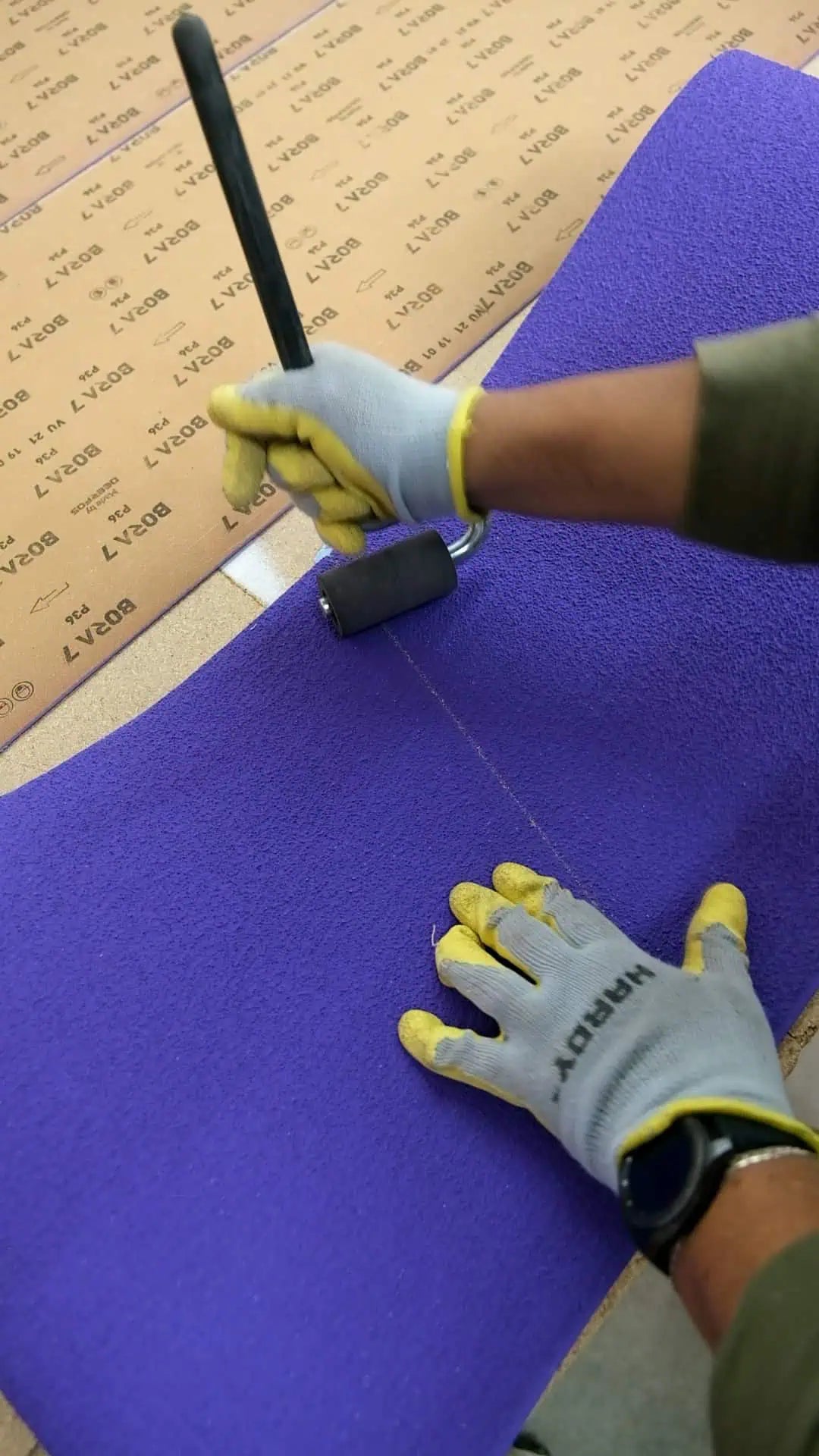 Once the material is cut, scuffed, glued and taped, itโs usually set to a width of twelve inches.