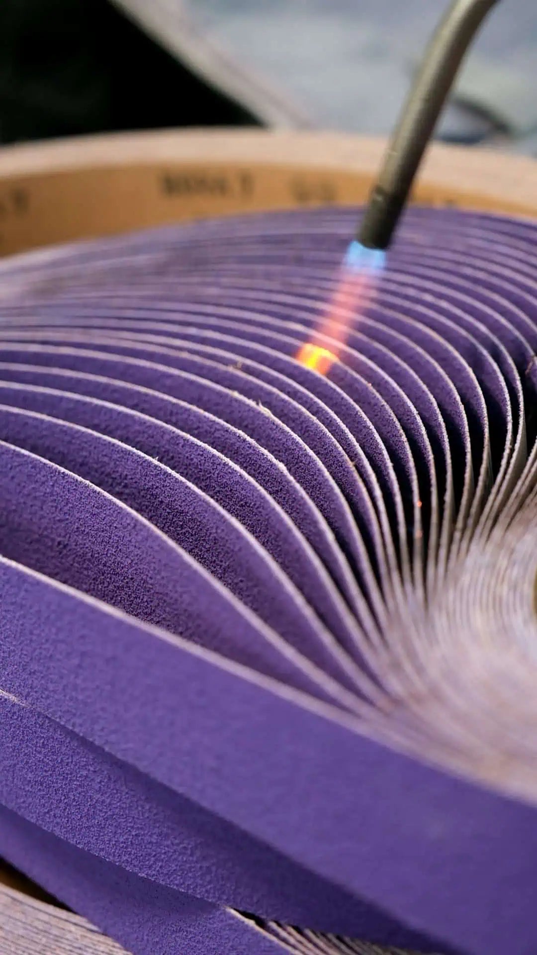 The coarser the sanding belts, the larger the problem can be for small strands of the y or x weight polyblended backing material to break off in thin strands or stragglers. Using a torch as the final finishing process can reduce these and leave a clean product ready for using its edge on your steel blanks or forged pieces.
